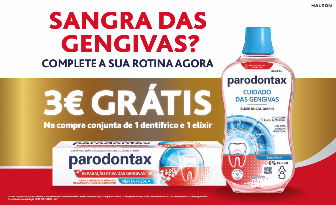 1) A campanha promocional denominada “Compre uma pasta e um elixir Parodontax em conjunto, obtenha 3€ Desconto” (doravante Campanha) é promovida pela Haleon Lda. (doravante Haleon) e tem como objetivo a dinamização dos dentífricos e elixires Parodontax junto do consumidor através da oferta de 3€ de desconto na compra conjunta de 1 pasta de dentes e 1 elixir Parodontax.